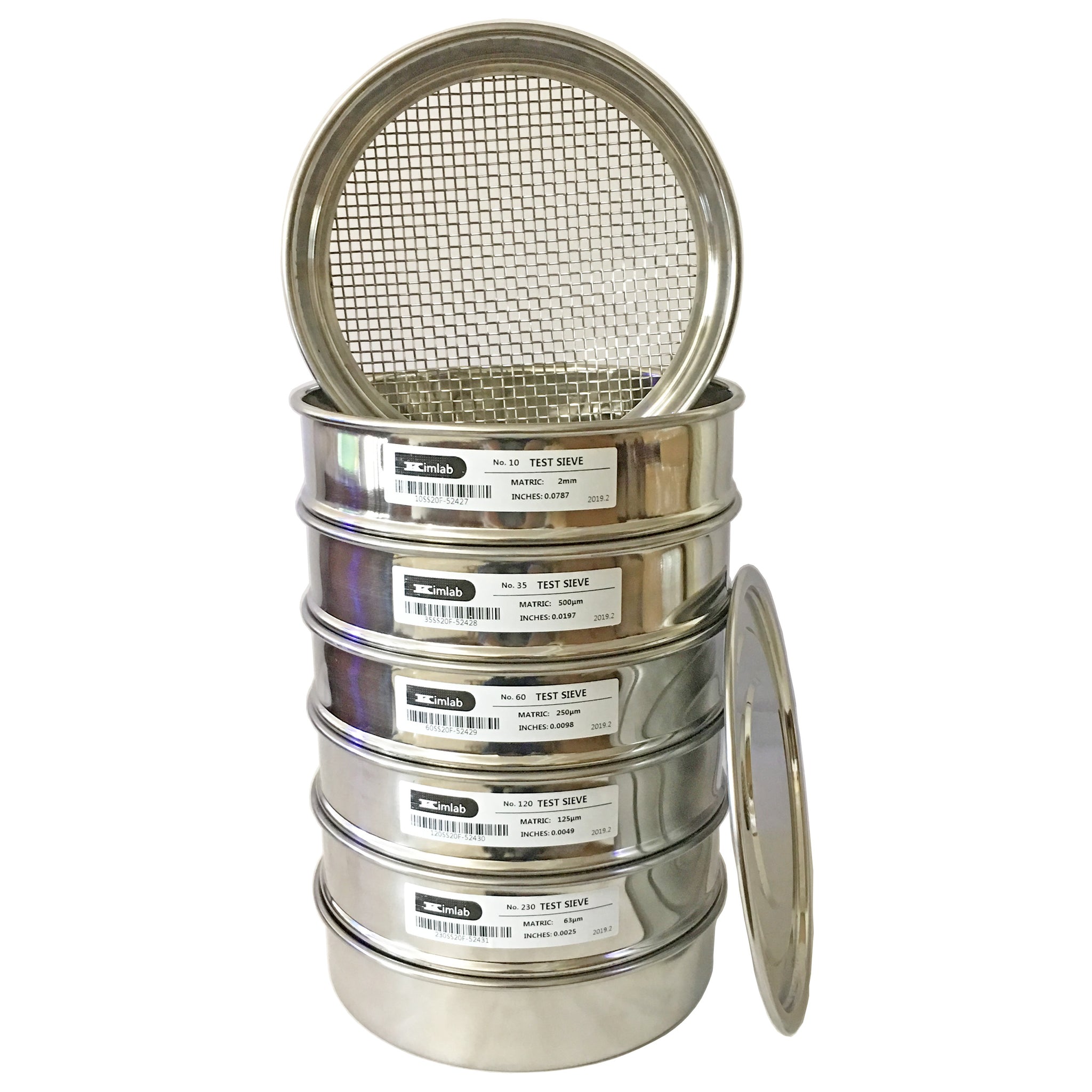 KimLab 0108SS20 Test Sieve ISO STD 8 Pcs with Lid&Pan,SS Frame and Wire,#5,#10,#35,#60,#120,#230 Mesh Size,20cm Diameter