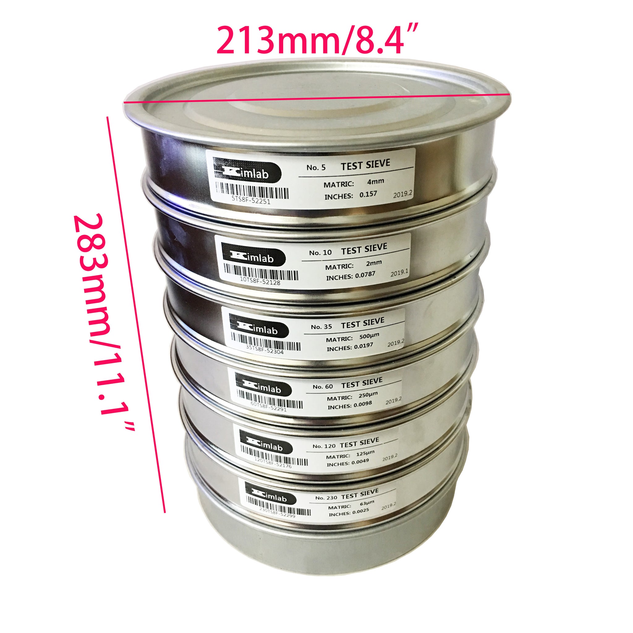- Include: #5/4mm, #10/2mm, #35/500μm, #60/250μm, #120/125μm, #230/63μm, Lid and Catch Pan